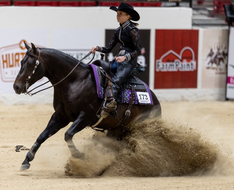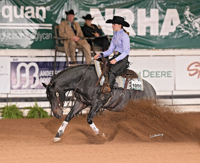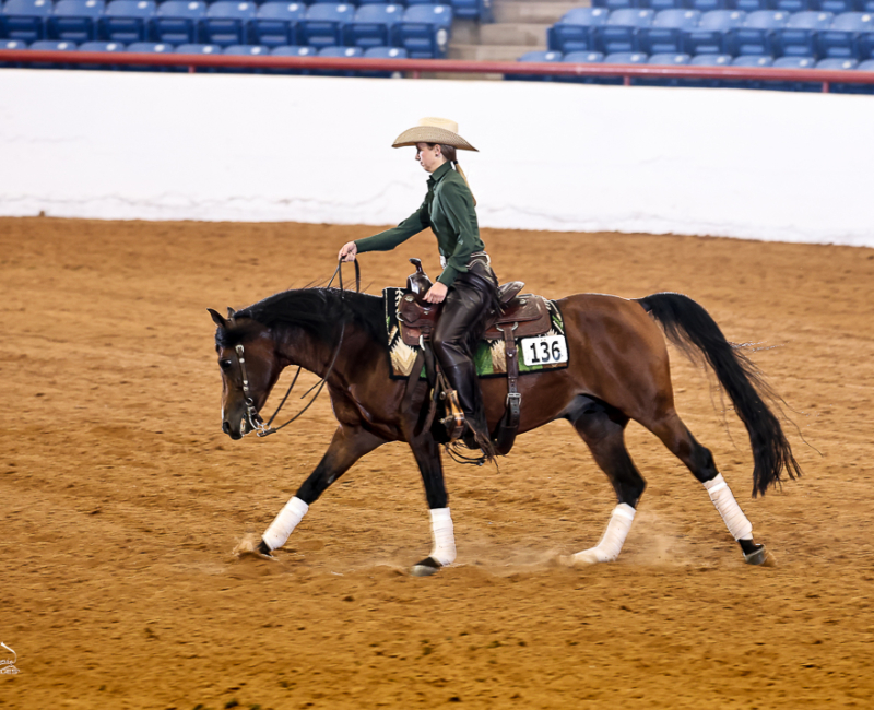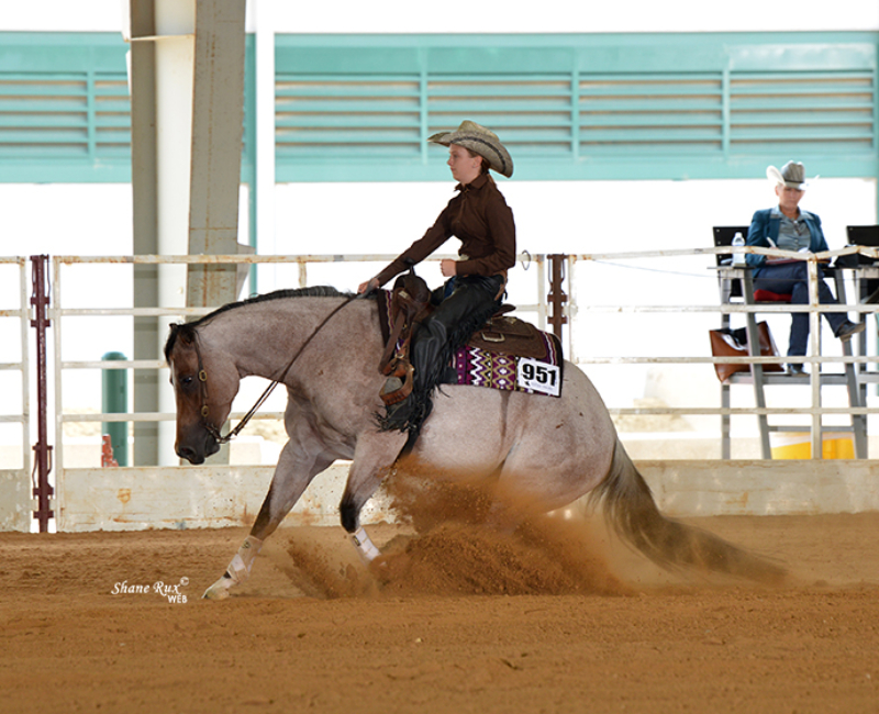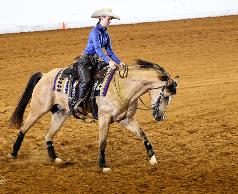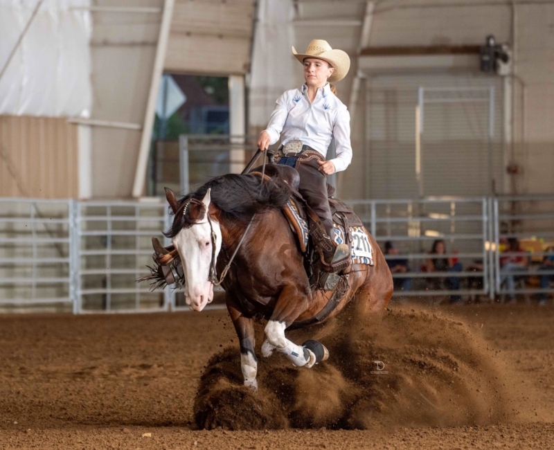 At the age of 5, I started asking my mom to allow me to take horseback riding lessons. Even though my mom is a horse lover and grew up with a retired show horse (he was given to her) in her backyard, my mom ignored my requests for several months until one of my good friends Libby asked me if I wanted to take an introductory riding lesson with her. My mom agreed, and from that first lesson, I knew that I wanted to ride regularly, and within several months, I dropped my other activities and started riding several times a week. The barn that I started riding at has a show team, and as I advanced from introductory lessons to group lessons, I knew that I wanted to show horses. My first show was a local open show in Katy, TX (I was 7 years old at the time). I rode in western pleasure and western horsemanship and was the youngest person in the classes by a wide margin. After that show, I was hooked, and I showed at my first Class A show that fall in western pleasure, horsemanship and trail. Although my parents said that if I worked hard, I would get a horse when I turned 10, three months later we were the proud owners of Hollywood Gold Digger (aka “Nugget”). Nugget taught me so much and will forever be my heart horse. Showing on the Arabian circuit provided an ability to become a very versatile rider, and I have been fortunate to be able to ride and compete in a variety of classes, including reining, horsemanship, ranch riding, trail, hunter pleasure, hunt seat equitation, sport horse, showmanship, and other classes. However, as I was aging out of 10-and-under, I knew that I wanted to focus more on reining and horsemanship, and we as a family decided to move to a trainer who shows on the NRHA, AQHA, APHA and Arabian circuits. Since 2021, I have trained and ridden with Gary Ferguson at Slide to Win. That move has accelerated my growth as a horsewoman in ways that I would not have imagined at the time of the move, and since 2021, I have had opportunities to show at the highest levels of the NRHA circuit and have qualified the last four years in the rookie and non-pro divisions at The Run for a Million. Additionally, I was reserve champion in the 13-and-under class at the NRHA Derby in 2021 and qualified for the non-pro finals at the 2023 and 2024 NRHA Futurity. Garygenerously provides many different horses of different ages, breeds, and levels of training for me to ride and show. That opportunity has provided me with tools needed to ride and succeed on many different types of horses.